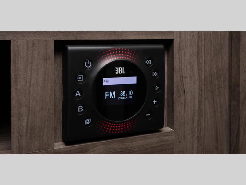 - E-Z Drive™; Automotive-bonded panoramic window in front cap with power shade; Frameless windows; Heated holding tanks (12V pads); Electric patio awning with LED lights; Black tank flush; Sony® infotainment center with Apple CarPlay® and Android Auto™; Backup and side-view cameras; LED HD Smart TV in living area