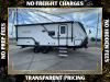The gel-coated fiberglass exterior and one-piece roof membrane form the base that holds all of the many features, like the three-burner range with an oven, residential walk-in shower, high capacity furnace, and LED HDTV. The friction-hinge entry door won't fly away when you open it, and the residential countertops will let you set down dinner plates. There is a large panoramic window and LED lighting to keep your trailer feeling open, and the four packages included will provide even more features you won't want to camp without. Some of these features include a 200W solar panel, an accessory hitch, and a full width pass-thru storage!