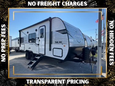 The Jayco Jay Flight SLX travel trailer is quite easy to own because it is lightweight for an easier towing experience. Built on a fully integrated A-frame with galvanized-steel, impact-resistant wheel wells, the Jay Flight SLX has quality at its very foundation. That quality continues on to the electric self-adjusting brakes, easy-lube hubs, Magnum Truss roof system, and LP quick connect. Some of what the mandatory Customer Value Package includes is backup camera prep, Keyed-Alike entry and baggage doors, and an on-demand tankless water heater.