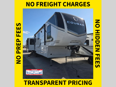 Spend more time having fun and less time worrying about your RV with the Keystone Cougar fifth wheel! These units have all that you will need for excellent vacations. The interior comes hardwood cabinet doors, solid surface kitchen countertops, an Oxygenics shower head and hose, plus a Vent-All window system. You will also appreciate the 12V charging stations throughout, the dual zone Bluetooth audio system, and the on-demand water heater for added comfort. The exterior is also fully outfitted with a convenience center, MaxTurn technology, Lippert axles with anti-lock braking system, and a Curt Road Armor shock absorbing equalizer for smooth towing. Each model is available with the optional Hero Edition. By choosing this edition, you can help support our nation's heros and their families by contributing to the Wounded Warrior Project. This optional package features an industry exclusive full-body paint matte finish, frameless windows, a glass entry door, blackout rims, and green LED exterior accent lighting; see dealer for more details!