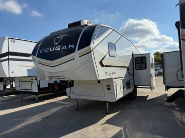 The Keystone Cougar Half-Ton fifth wheel and travel trailers are known as one of America's favorites for a reason! Some of those reasons are the exclusive features that come from Keystone, like the Winegard Air 360+ omni-directional rooftop antenna, the in-floor heating ducts, and the HyperCore composite wall construction with Vixen Fibrogloss high-gloss finish. The Cougar Half-Ton has a Climate Guard protection package with heat-deflecting white sidewalls, two roof attic vents, PEX plumbing and more to enjoy four season camping. Inside, you'll love the dimmable lighting, night roller shades throughout, shower skylight, and bedside USB outlets to keep your electronics charged.