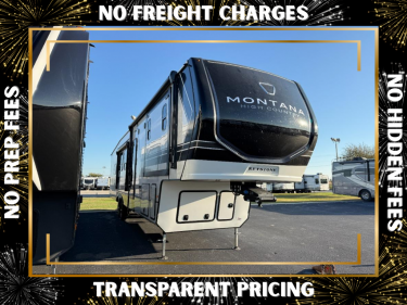 Live the high life with a Keystone Montana High Country fifth wheel! You'll have all the luxury you need with these units. They come with a MaxTurn™ front cap with KeyShield™ automotive-grade paint, a fully walkable roof with Alpha seamless TPO membrane system, and an insulated underbelly with forced hot air and electric tank heaters. The MORryde CRE3000 suspension with wet bolts helps provide a smooth tow, and the Ground Control® four-point electric auto-leveling with hitch memory will make set-up quite easy. The interior is elegantly appointed with the Thomas Payne Collection furniture, hardwood decorative slide-out fascia, Beauflor® vinyl throughout, accent crown molding, and premium solid surface kitchen countertops.