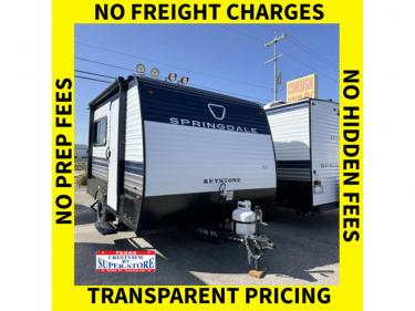 The Springdale Mini by Keystone are conventionally built, single-axle travel trailers allowing you to camp at an affordable price-point and easily tow to all the campgrounds on your wish list!