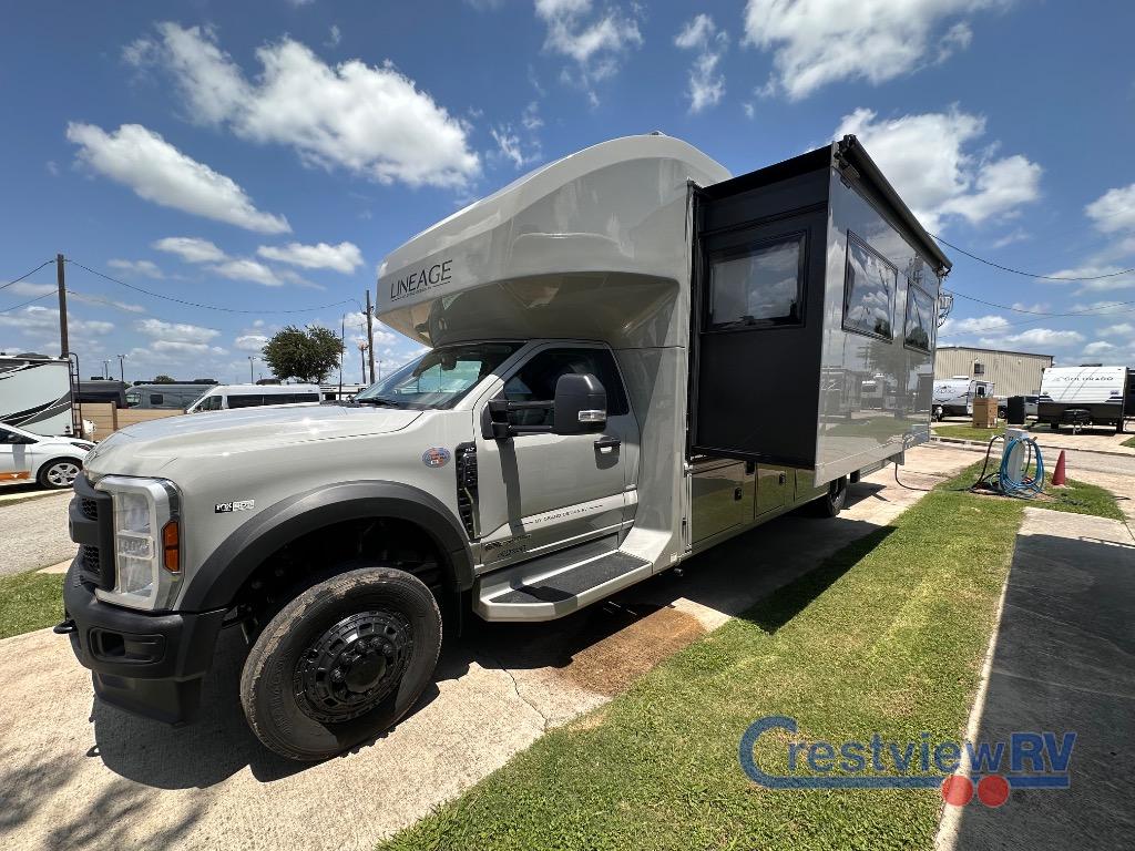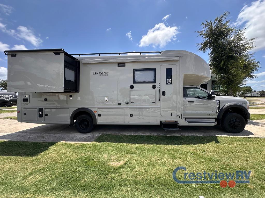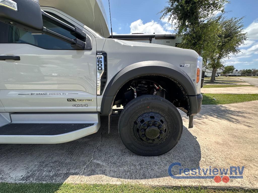 The capable Lineage Series F Super C diesel motorhome by Grand Design is your ticket to adventure! There is a Fox Factory Suspension Package for optimal handling, and you can go off the beaten path with the 6.7L power stroke diesel 4x4 chassis. This coach sits on the Ford F-600 super duty platform, and features a MorRyde tubular steel frame for added strength and durability. You'll find many at-home comforts inside, including comfortable seating and sleeping spaces, full bath and kitchen amenities, and plenty of storage for your personal belongings and camp gear!