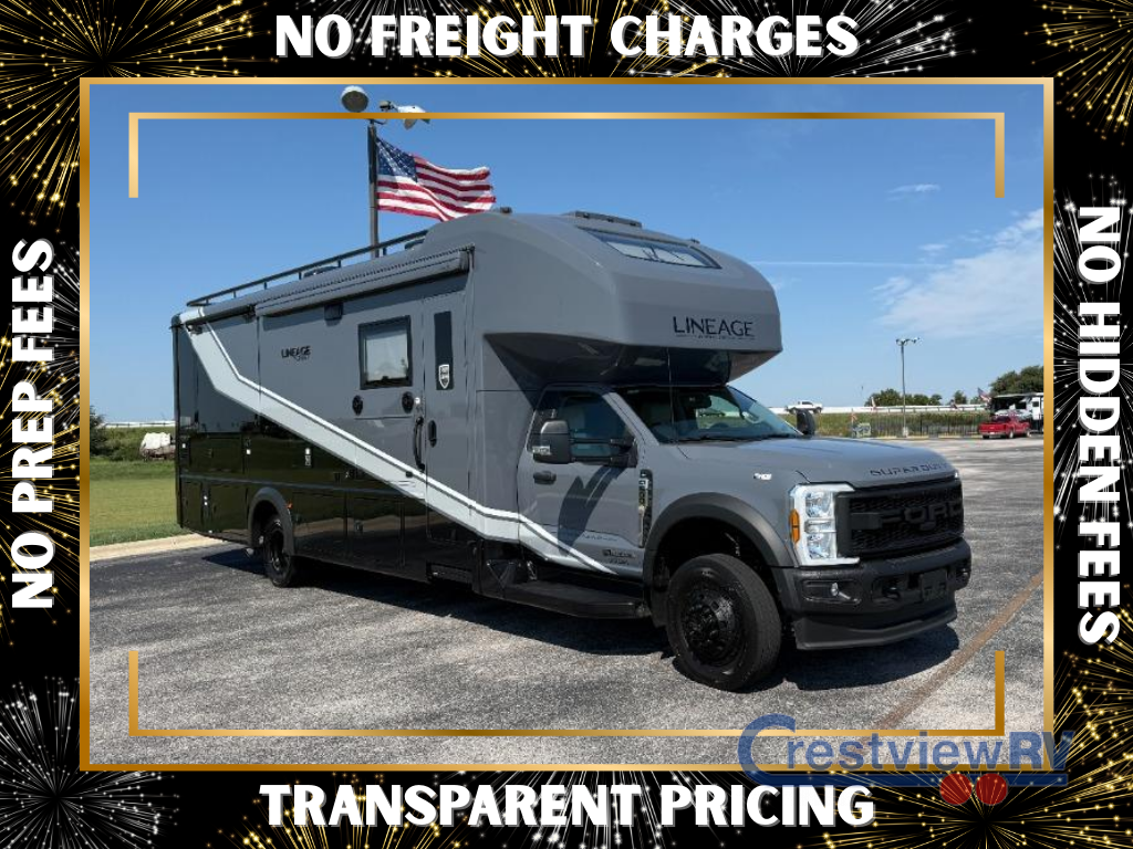 The capable Lineage Series F Super C diesel motorhome by Grand Design is your ticket to adventure! There is a Fox Factory Suspension Package for optimal handling, and you can go off the beaten path with the 6.7L power stroke diesel 4x4 chassis. This coach sits on the Ford F-600 super duty platform, and features a MorRyde tubular steel frame for added strength and durability. You'll find many at-home comforts inside, including comfortable seating and sleeping spaces, full bath and kitchen amenities, and plenty of storage for your personal belongings and camp gear!