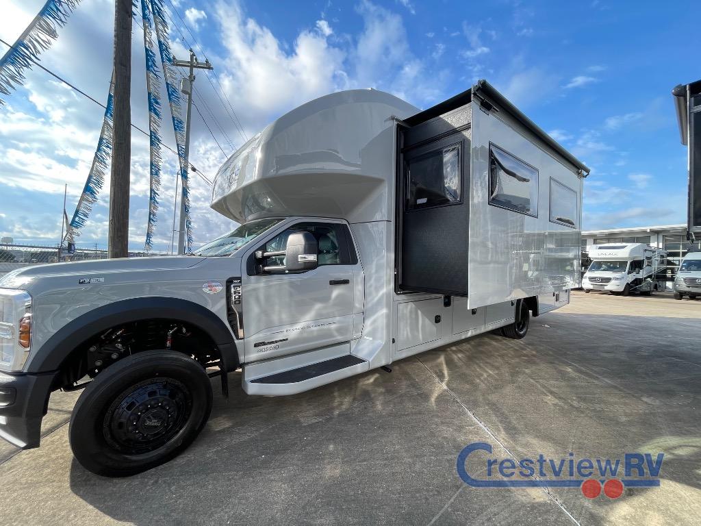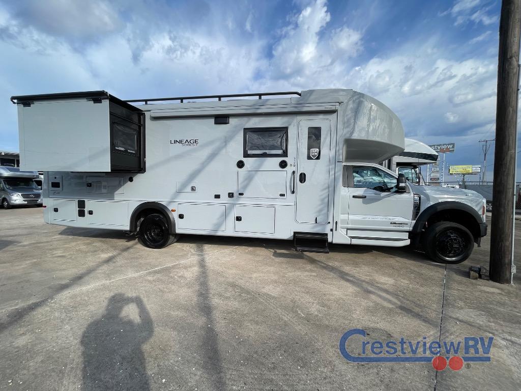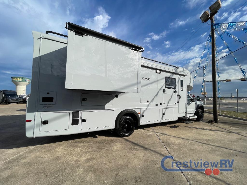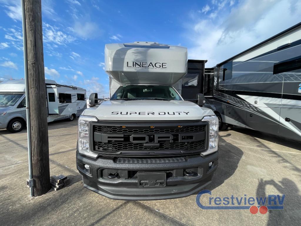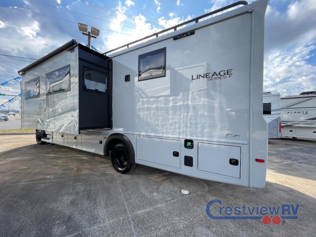 The capable Lineage Series F Super C diesel motorhome by Grand Design is your ticket to adventure! There is a Fox Factory Suspension Package for optimal handling, and you can go off the beaten path with the 6.7L power stroke diesel 4x4 chassis. This coach sits on the Ford F-600 super duty platform, and features a MorRyde tubular steel frame for added strength and durability. You'll find many at-home comforts inside, including comfortable seating and sleeping spaces, full bath and kitchen amenities, and plenty of storage for your personal belongings and camp gear!