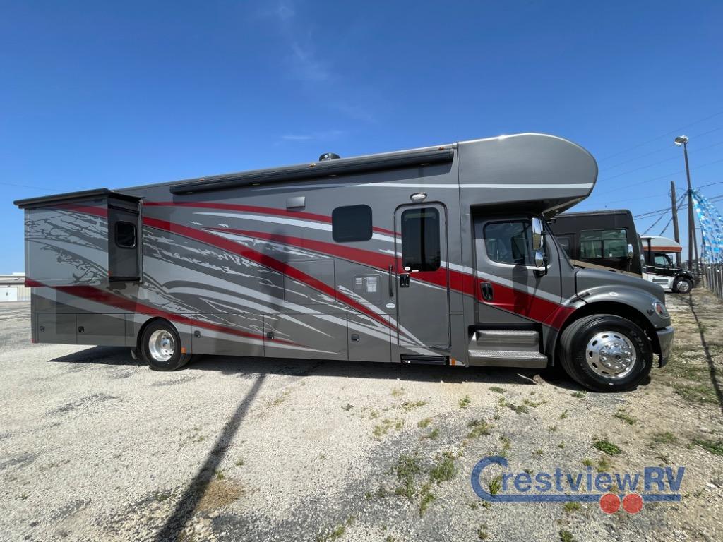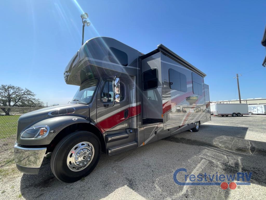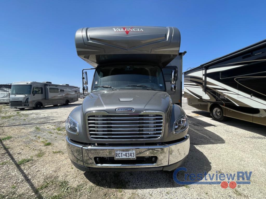 Each one of these Renegade Valencia Super C diesel motorhomes offer the ultimate comfort and durable construction! They have the first front engine diesel Freightliner S2RV chassis for a refined ride with responsive handling, as well as a powerful Cummins ISB 360 HP engine with a 3,000MH Alison transmission and a single 100 gallon fuel tank to get you farther. A few of the beautifully designed interior features are the solid hardwood cabinets, the polished solid surface countertops, and the stainless steel appliances. Travel in comfort and style with the modern furniture and abundant storage areas like the exterior powder coated steel storage compartments with carpeted lining. You will also appreciate the four point automatic hydraulic leveling system and the multiplex system with color touch panel and Bluetooth app control. With four full paint color options and three interior décor options, you can be sure to find the right one for you!